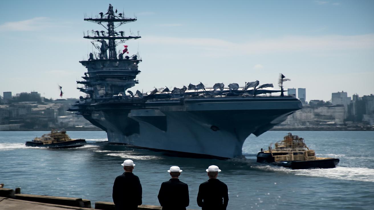 When the carrier finally eases into port, mooring lines become physical bridges between this self-contained world and the one on shore. The ship doesn’t shut down, of course—vital systems keep humming—but the tempo changes. Watch schedules adjust, duty rotations reorganize, and gradually, small streams of sailors in crisp uniforms step off the gangway onto solid ground.