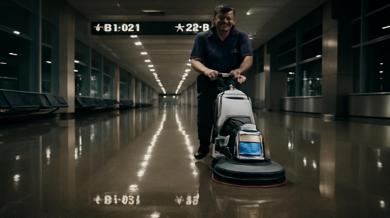 The first thing you notice is the shine. Not the harsh, clinical glare of a shopping mall, but a soft, almost liquid gleam spreading down the concourse like a river of glass. It’s 5:12 a.m. at a nearly empty airport, and while most people are fumbling with coffee lids and boarding passes, someone else is quietly transforming chaos into calm under their feet.