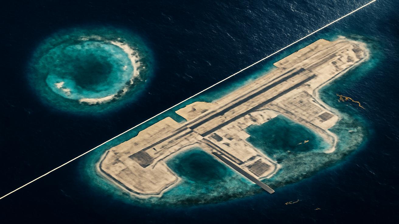 Seen from a satellite, they form a growing constellation of man-made stars scattered across the sea. Look a little closer, and you begin to see their purpose. Long breakwaters curl like stone arms around harbors where deep-draft vessels can dock. Fuel tanks gleam in the tropical sun. Anti-aircraft emplacements sit like tiny, dark punctuation marks along the shore. At night, the islands glow with orderly rows of lights, drawing almost neat squares of luminescence against the sprawling darkness of the ocean.