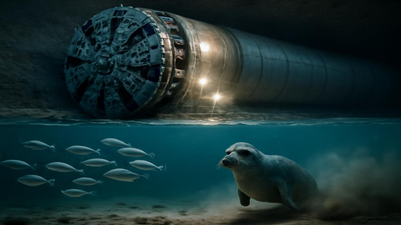 Then comes the drilling: massive tunnel boring machines grinding through rock, shielded from the crushing pressure of the deep. On land, their vibrations might register as a distant tremor. Underwater, especially near the relatively thin sediments of the seafloor, the noise spreads and resonates through the water column. Each rotation is a knock at the door of everything that lives nearby.