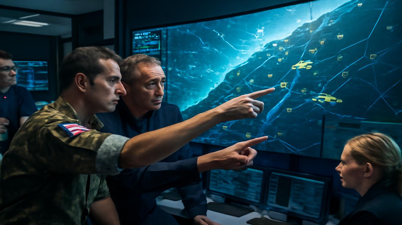 A French engineer leans forward, zooming in with two quick taps. Beside her, a British naval officer folds his arms, watching as an AI model overlays colored contours on the image: green for safe, amber for uncertain, red for probable threat. The verdict: 87% confidence that this lump of metal is a mine from another era, yet still deadly.