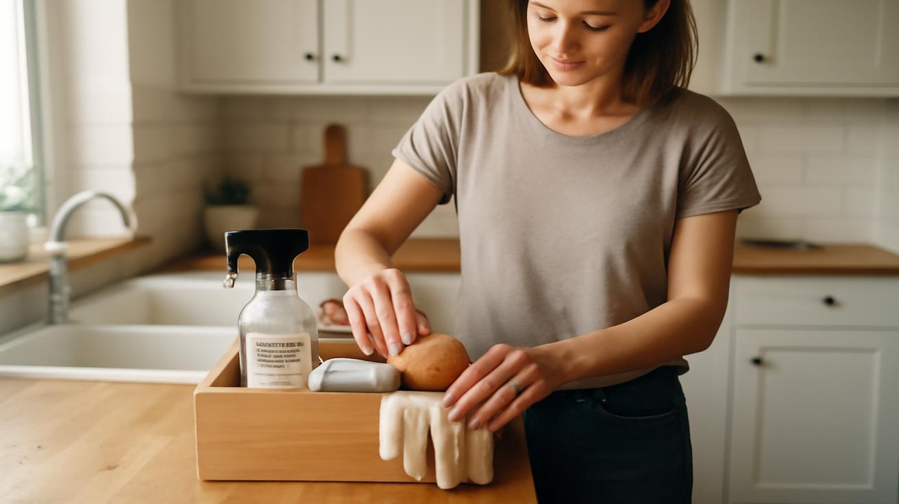 I started small. I emptied everything out: sprays, cloths, brushes, the random half-used sponge that probably had a PhD in bacteria by now. I sorted through each thing, paying attention to textures, scents, the quiet little satisfaction of discarding what was empty or broken.