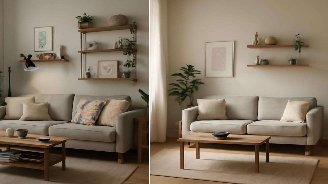 To make this easier to visualize and adapt to your own rooms, here’s a compact guide showing subtle before-and-after style shifts that specifically target that visually noisy middle band of your space.