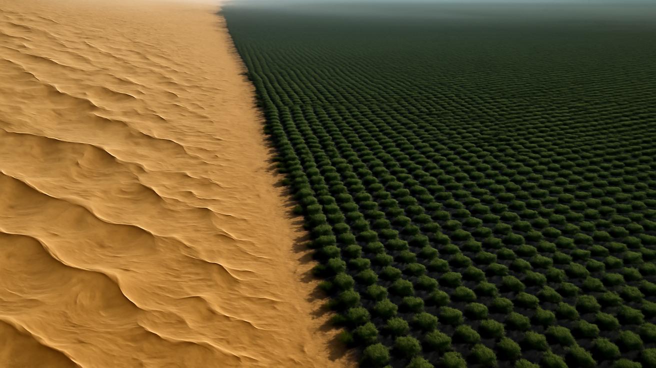 But in the early 2000s, something began to change. Subtle at first, then unmistakable. Streaks of green appeared where, not long ago, only bare soil and scrub had glared back at the satellites. At the edges of once-advancing dunes, new textures began to emerge—regular lines, geometric blocks, and uneven smudges, all tinted in the spectral signatures that scientists recognize as signs of living vegetation.