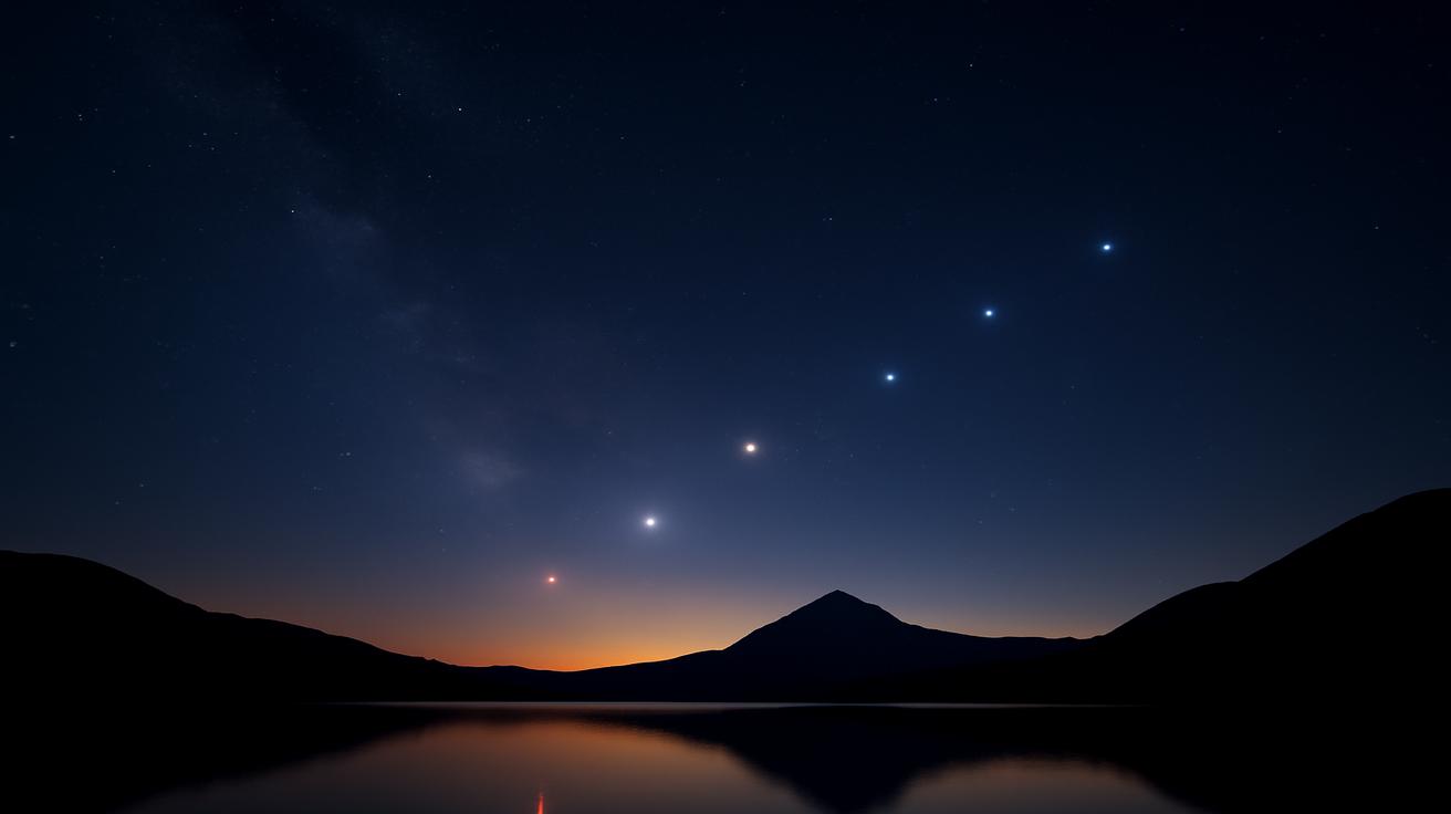On the night of a six-planet alignment, you can trace this path with your own eyes. Start at the western horizon, find the first bright planet glinting above the afterglow of the Sun, and then slowly sweep upward and across the sky. Like beads on a string, they follow one another: a pale light here, a red spark there, a bright gem higher up, another faint glimmer where the sky grows thin. At some point in that slow, deliberate motion of your gaze, you realize you are not just stargazing. You are tracing the wheel of the solar system itself as it turns silently around you.
