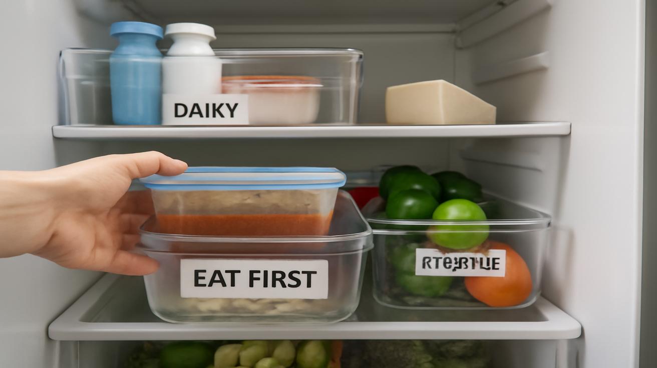 Pair it with habits you already have. Before deciding what to cook, make it a rule to glance at the zone first. Some people put a small note on the fridge door handle that says “Check Eat-First Shelf” until it becomes automatic.