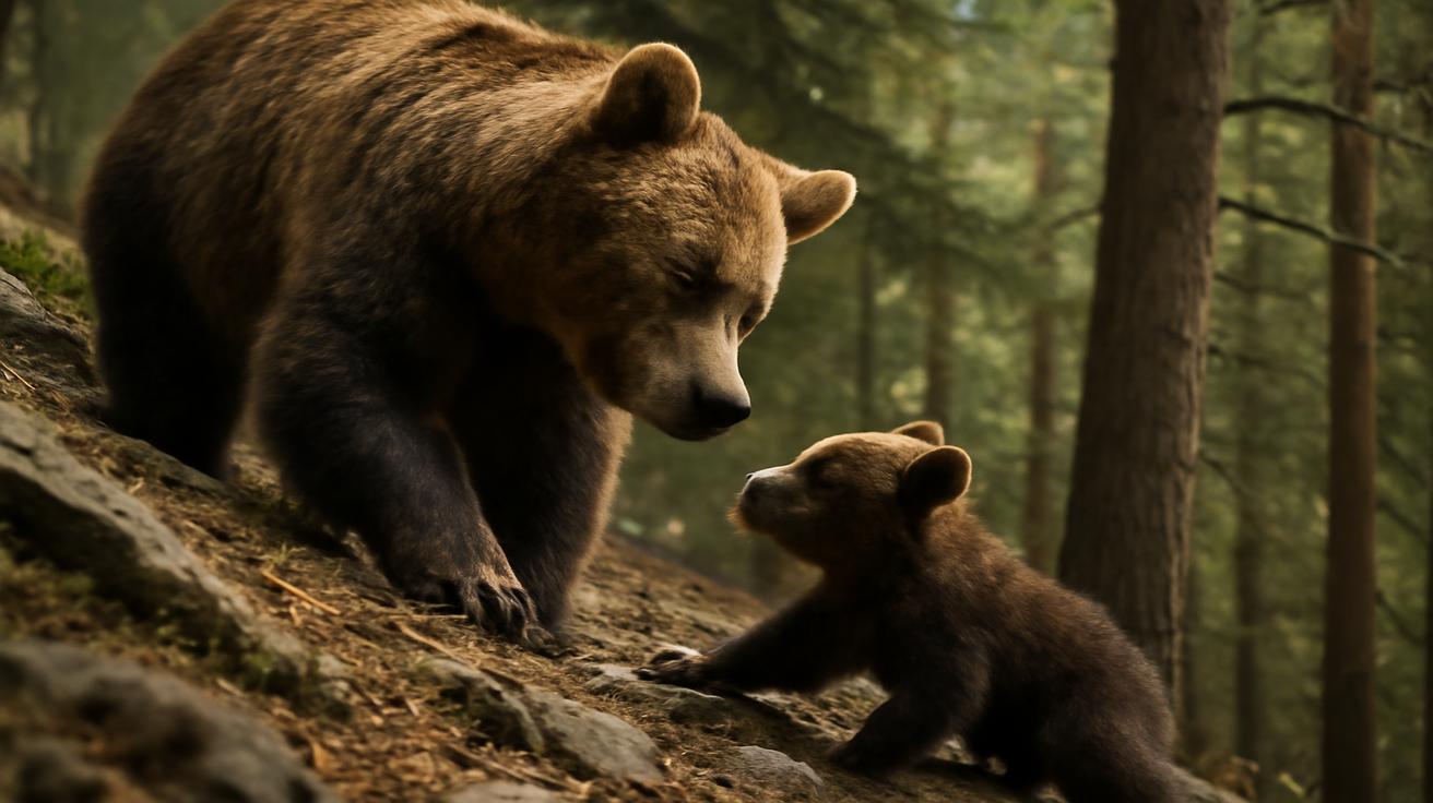 The first thing you notice is not the bears at all—it’s the sound. A low hush of wind moving through spruce needles, the quiet drip of snowmelt somewhere out of frame, the small, secret creaks of a forest waking up. Then, as if the woods suddenly remember you are watching, two shaggy shapes move into view on the trail camera’s screen—one large, one small, both haloed by the soft, green light of late spring. What happens next is only a few minutes long, but it’s enough to rearrange the way you think about wildness, strength, and the language of care.