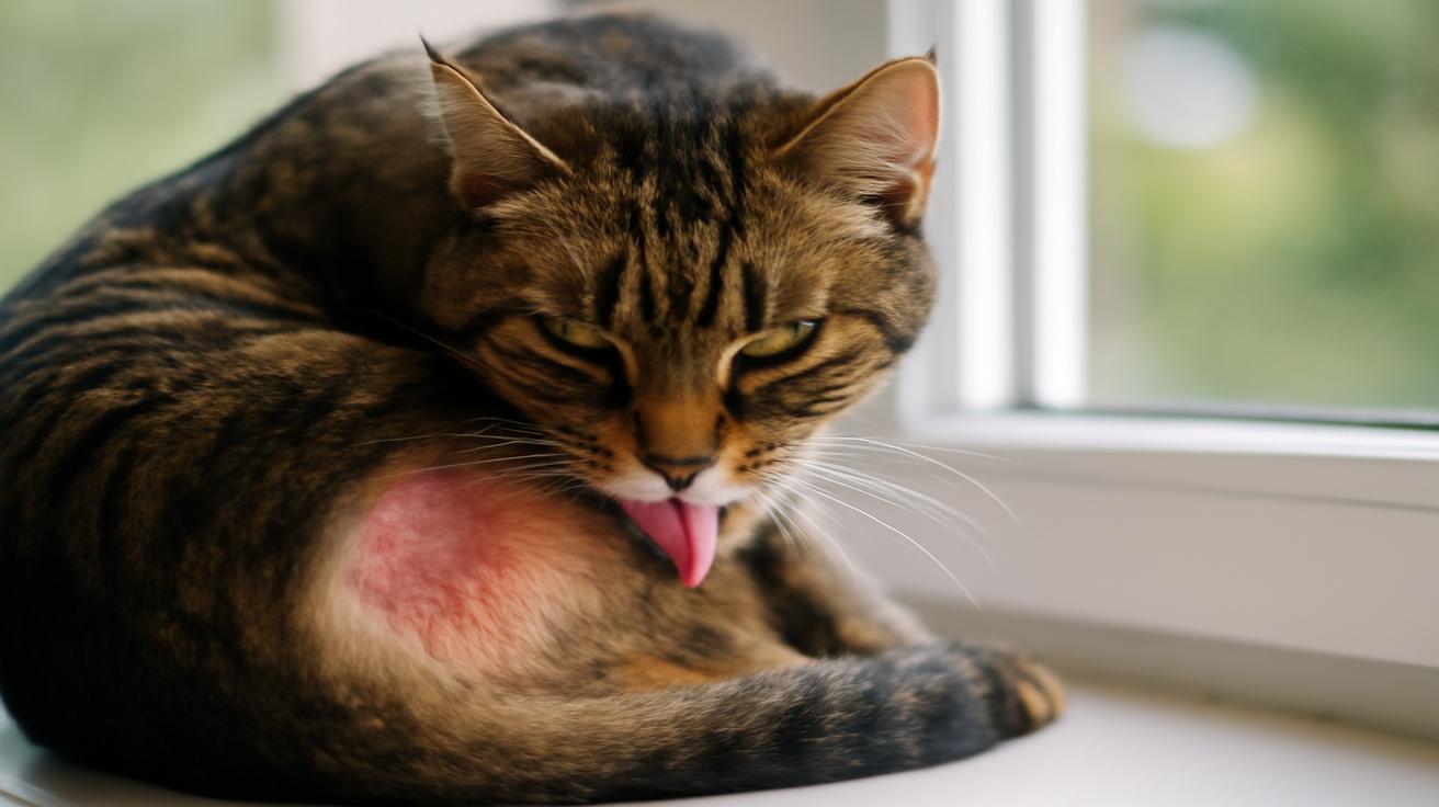 You notice it again while you’re scrolling your phone on the couch: that soft rasping sound, like sandpaper brushing silk. Your cat is curled in a tight cinnamon bun on the chair, tongue flicking rhythmically over the same patch of fur on her side. Lick, pause. Lick, lick, lick. You watch for a moment, half-smiling—cats groom themselves all the time, you remind yourself. But then you realize you saw her doing the exact same thing an hour ago. And earlier this morning. And last night. The moment stretches as you listen to that quiet, repetitive sound. Is she just being… a cat? Or is something else whispering beneath all that fur?